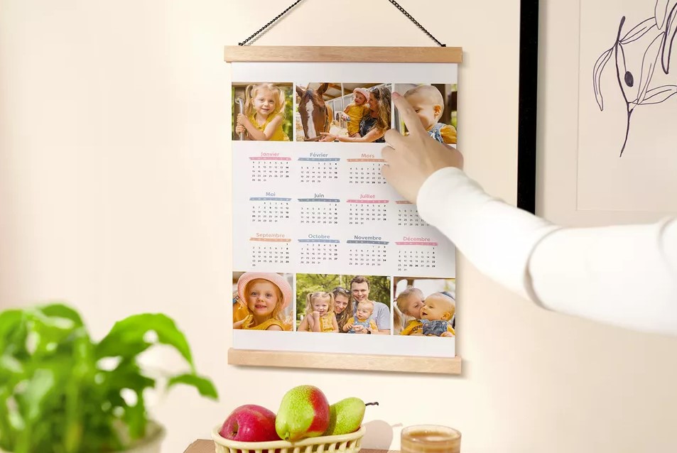 Un calendrier photo mural vous fait revivre des moments mémorables d’un simple regard. Les mois se succèdent et dévoilent vos prises de vue préférées. Portraits ou paysages, au format de votre choix, ornent ce bel objet réalisé avec soin.